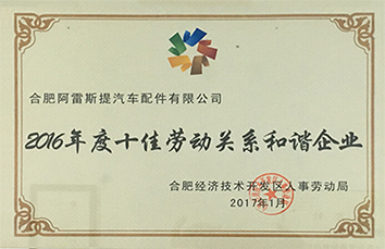 2016年度十佳勞動(dòng)關(guān)系和諧企...