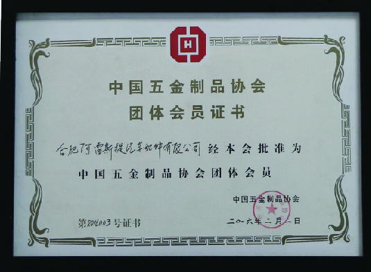 中國(guó)五金制品協(xié)會(huì)團(tuán)體會(huì)員證書(shū)